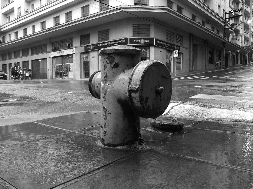 Acima, uma senhora enfrenta a chuva durante a descida da Barros Cassal em direção à Avenida Farrapos. Em outro local próximo, cruzamento da Barros Cassal com a Independência (fotos abaixo).