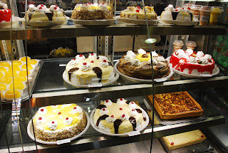 Después vienen las carnes que depende también depende del lugar en algunos tienen una parilla con res, pollo y pez u otros tienen guisados más elaborados como estrogonof o carne de puerco con alguna salsa, lomo relleno. Ahora que hace frío no puede faltar la sopa al principio generalmente es de verduras. Para terminar un final espectacular el POSTRE! Donde tenemos flan y pudín de chocolate con galleta casi siempre pero también hay gelatina de diferentes sabores, bolitas de harina en una salsa roja, FRUTA espectacular a veces tienen mi favoritas los caquis, sandía, melón, papaya, guayaba, etc. Hablando de otras delicias es el RODIZIO y tomo la palabra tal cual del portugues ya que no se cual sería su mejor traducción es simplemente sentarse y esperar que te traigan pizzas de muchos sabores hasta que te llenes, las dulces son muy buenas: chocolate con fresas, manzana con canela, banana split, maracayá, chocolate con m&m, etc.