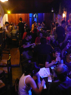 After 6pm on a Tuesday (the beginning of the drinking week for most locales) you can find a variety of botecos, bars and pseudo-pubs in the area of Cidade Baixa. All of the pubs have table service which means you rarely get up save to go to the bathroom but makes it difficult to mingle. When you enter these establishments you are given a comanda, a slip of paper on which your orders are tallied and which you lose under pain of a billion R$ fine. The fine is only to spook you, there´s no legal way they can make you pay it. The real problem with the comanda system is when you miscalculate your own funds.
