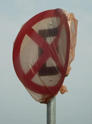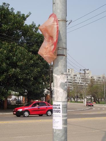Na Augusto de Carvalho, a EPTC colocou novas placas de sinalização. O interessante é que estão ensacadas. A sinalização só valerá para a Semana Farroupilha?